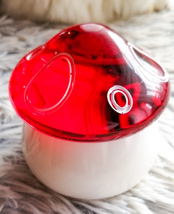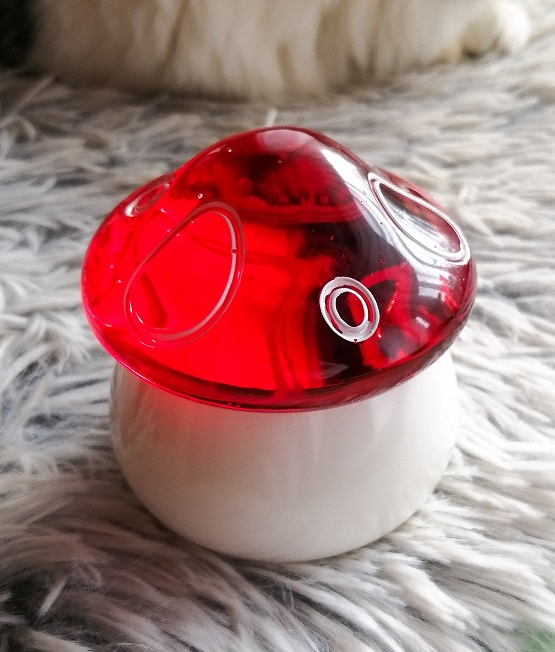 Okrasna posoda v obliki gobe rdeče mušnice, s pokrovom