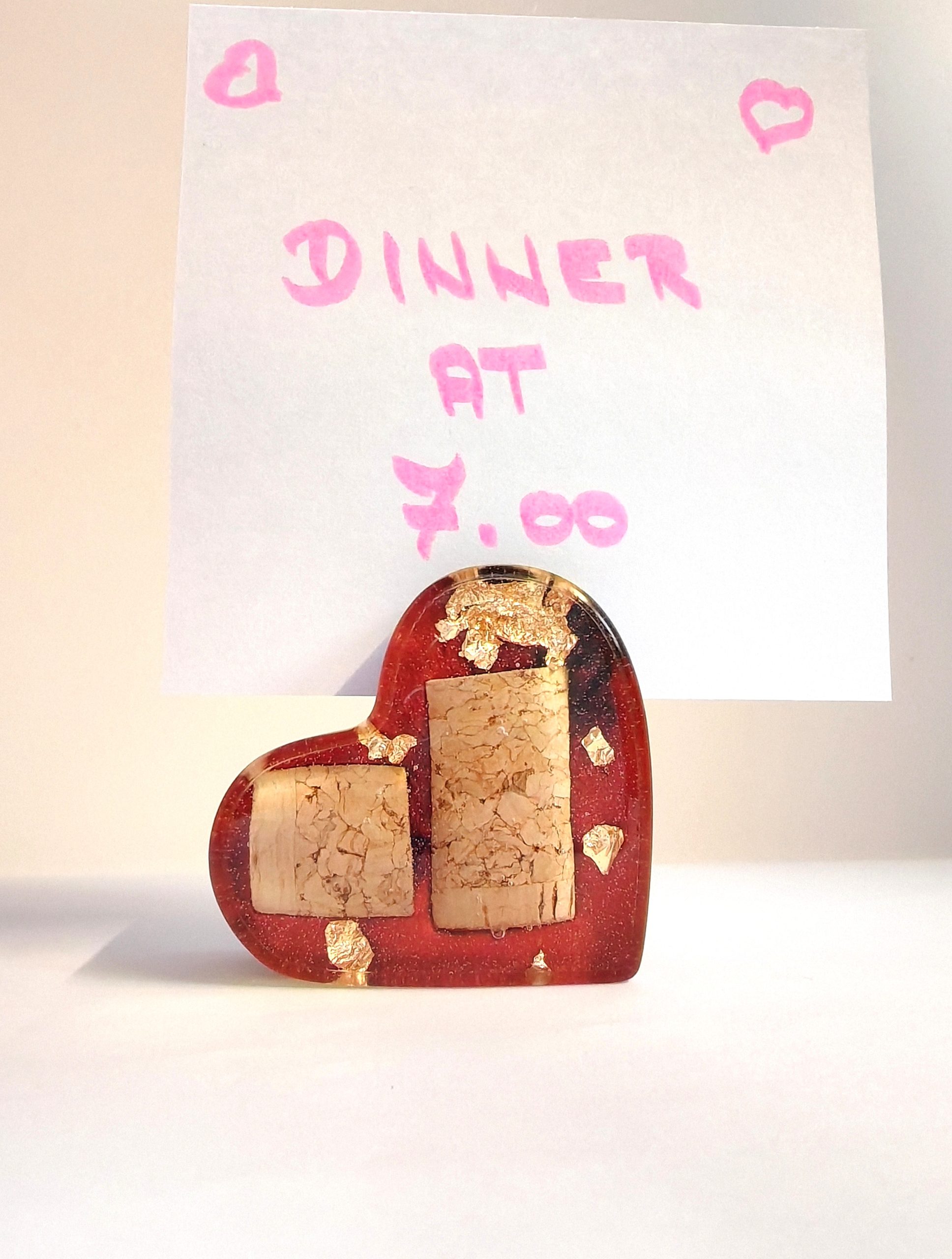 Ti ročno izdelani stojali iz smole v obliki srca so zasnovani za shranjevanje fotografije, vizitke ali majhnega sporočila z uporabo subtilne zgornje reže.