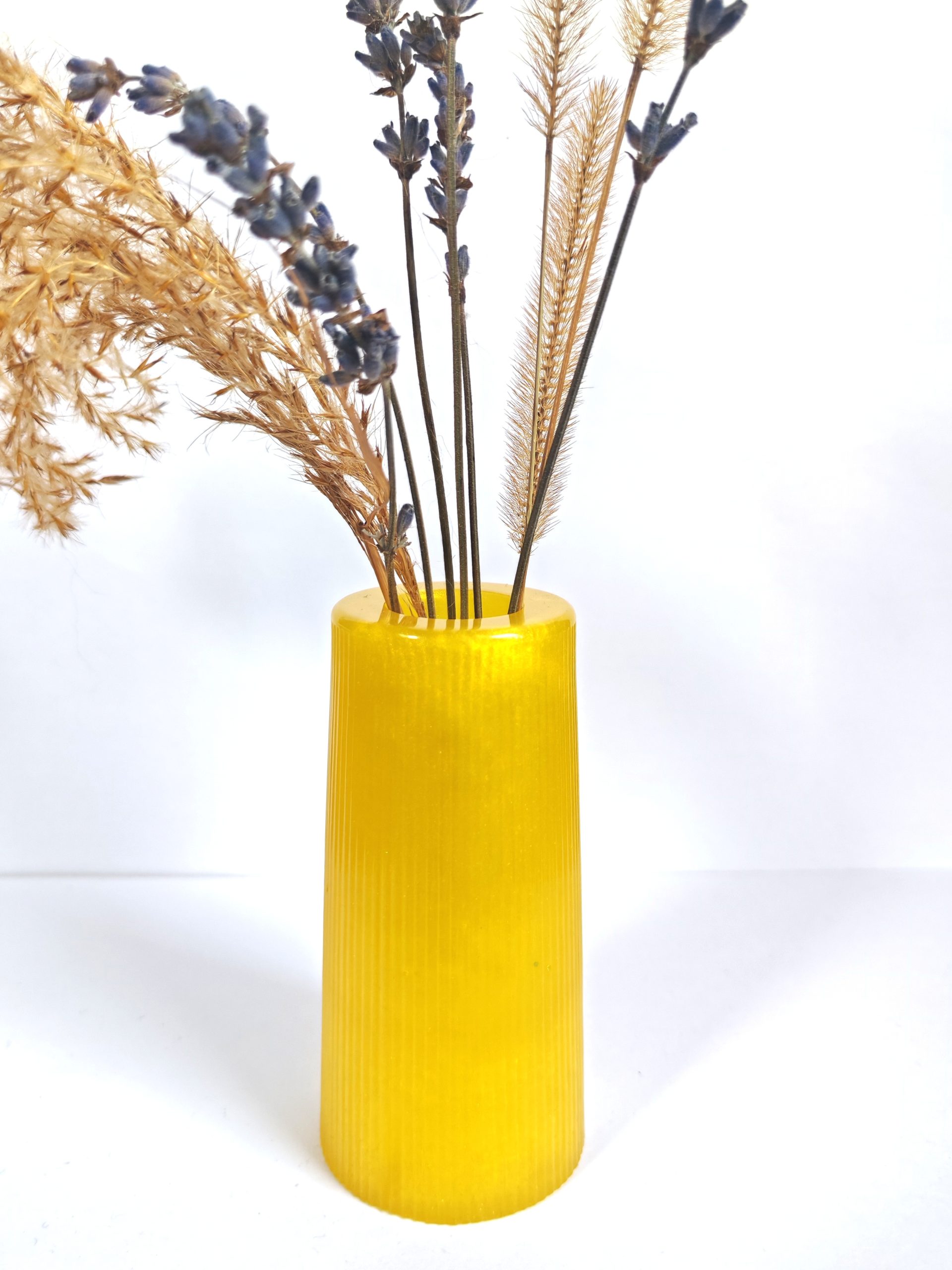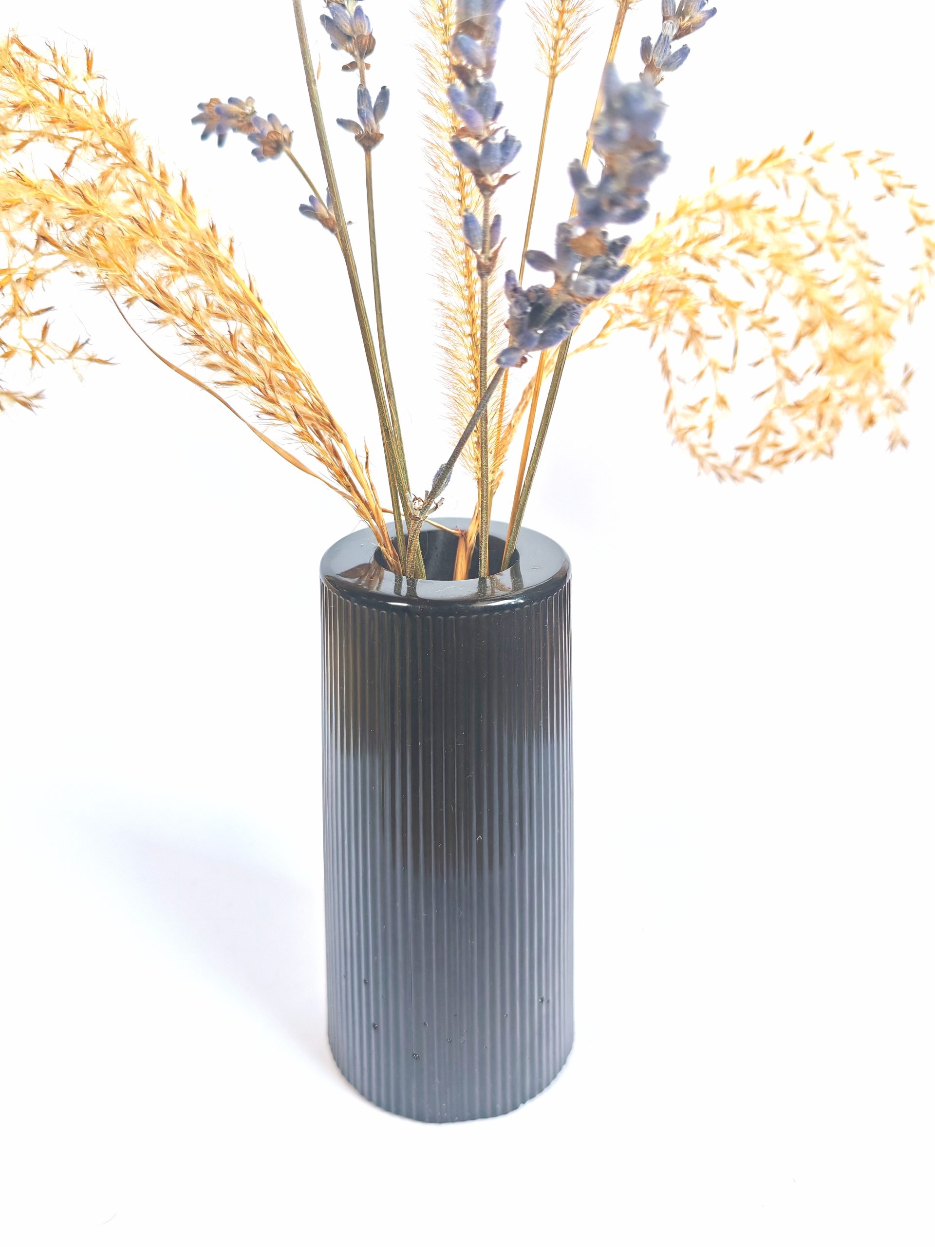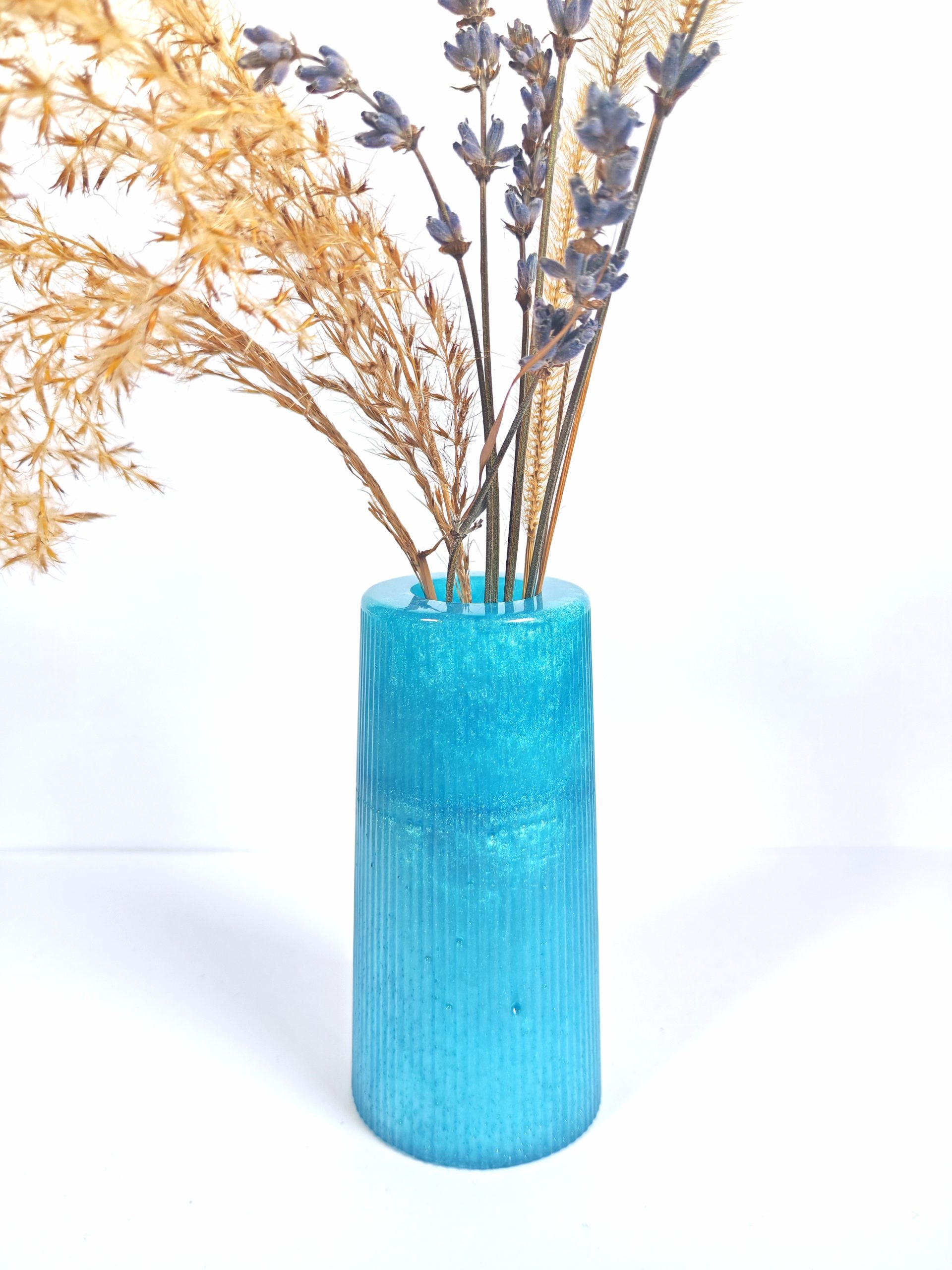 Ta majhna vaza, ročno izdelana iz visokokakovostne epoksidne smole, je trpežna, lahka in popolna za dodajanje veselega barvnega pridiha vaši mizi, polici ali okenski polici. Njena minimalistična valjasta oblika se čudovito poda v moderno, boemsko ali barvito notranjost.