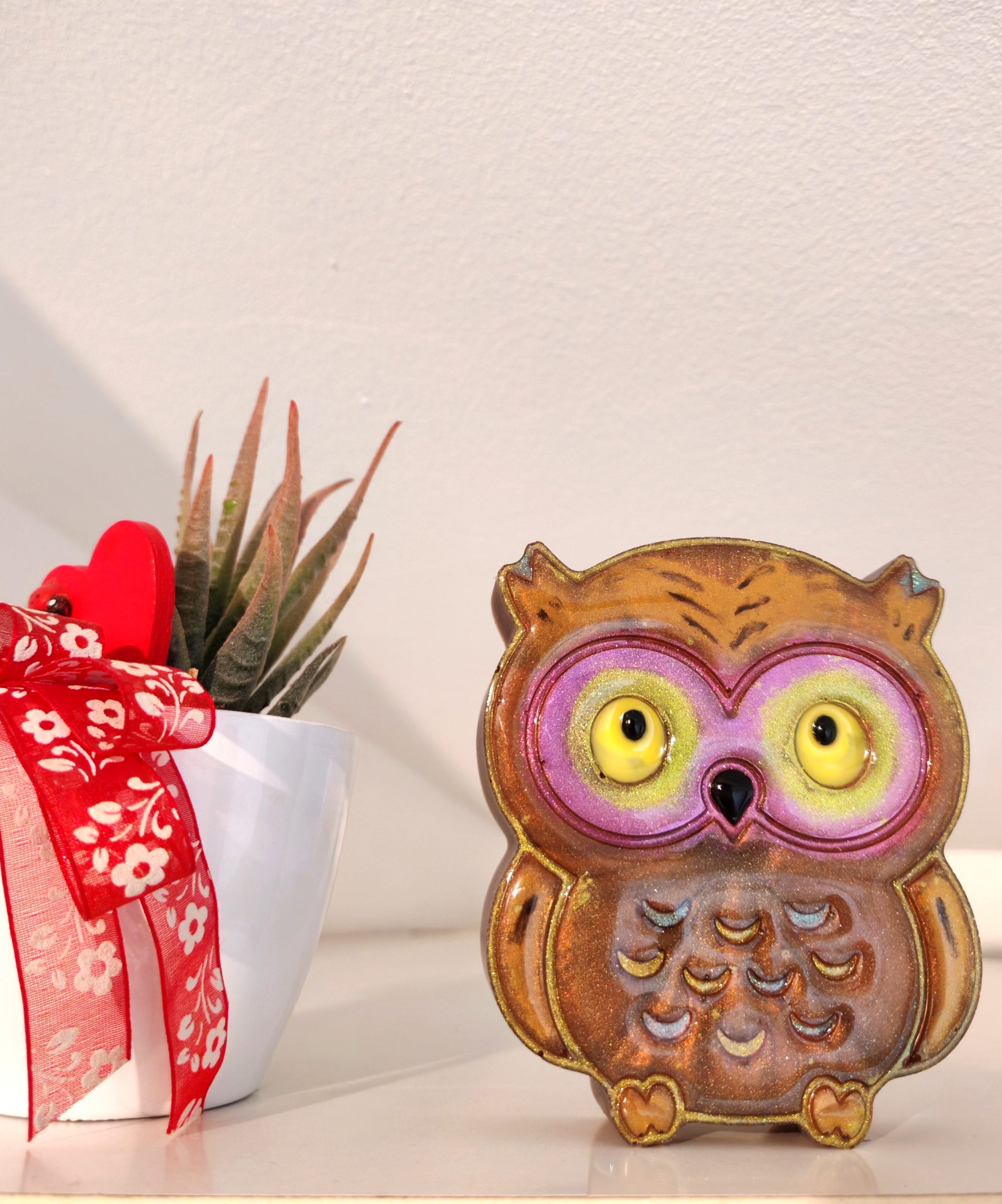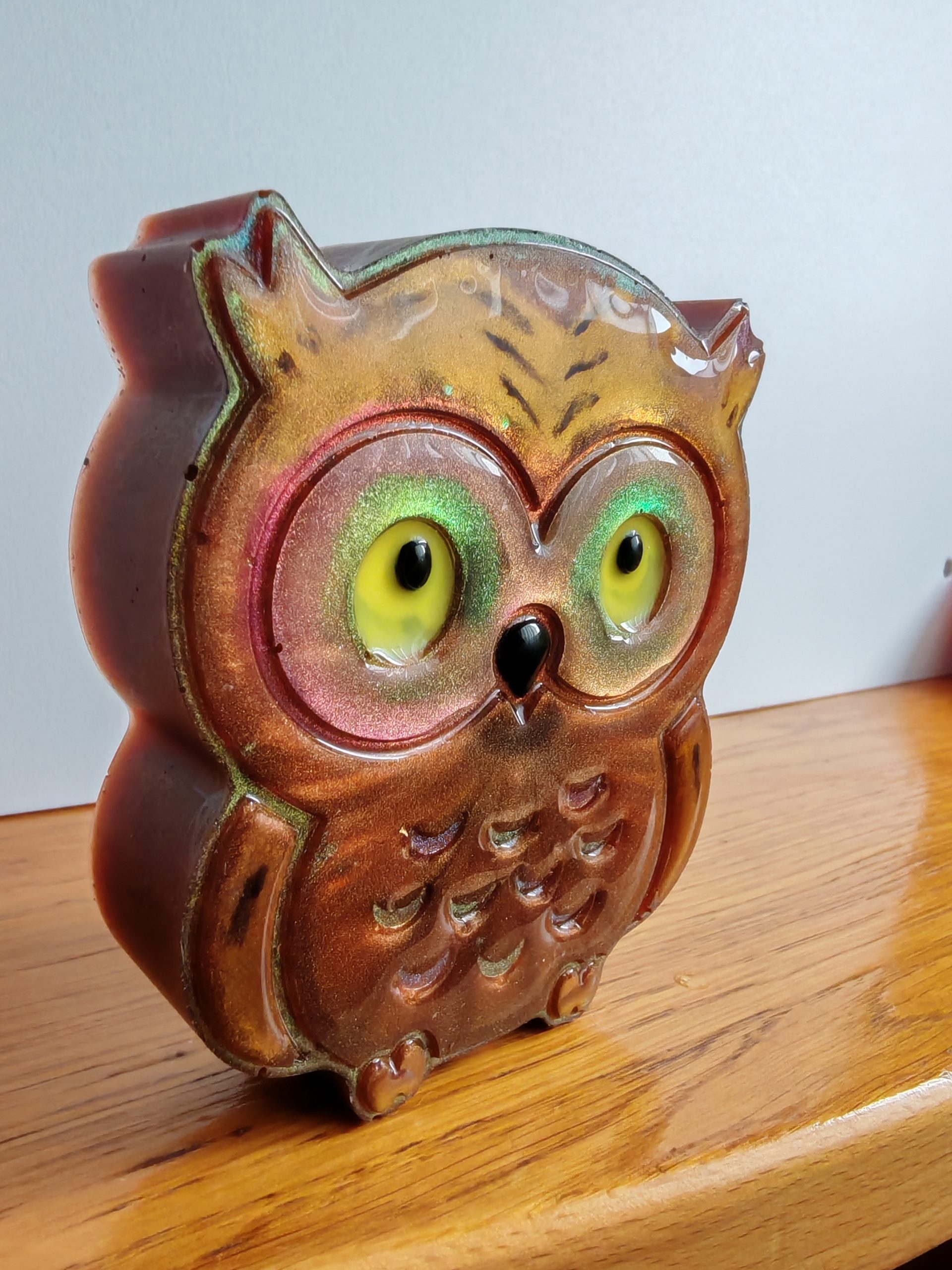 Ta edinstvena ročno izdelana sova iz smole je edinstven dekorativni umetniški kos, skrbno ustvarjen plast za plastjo.