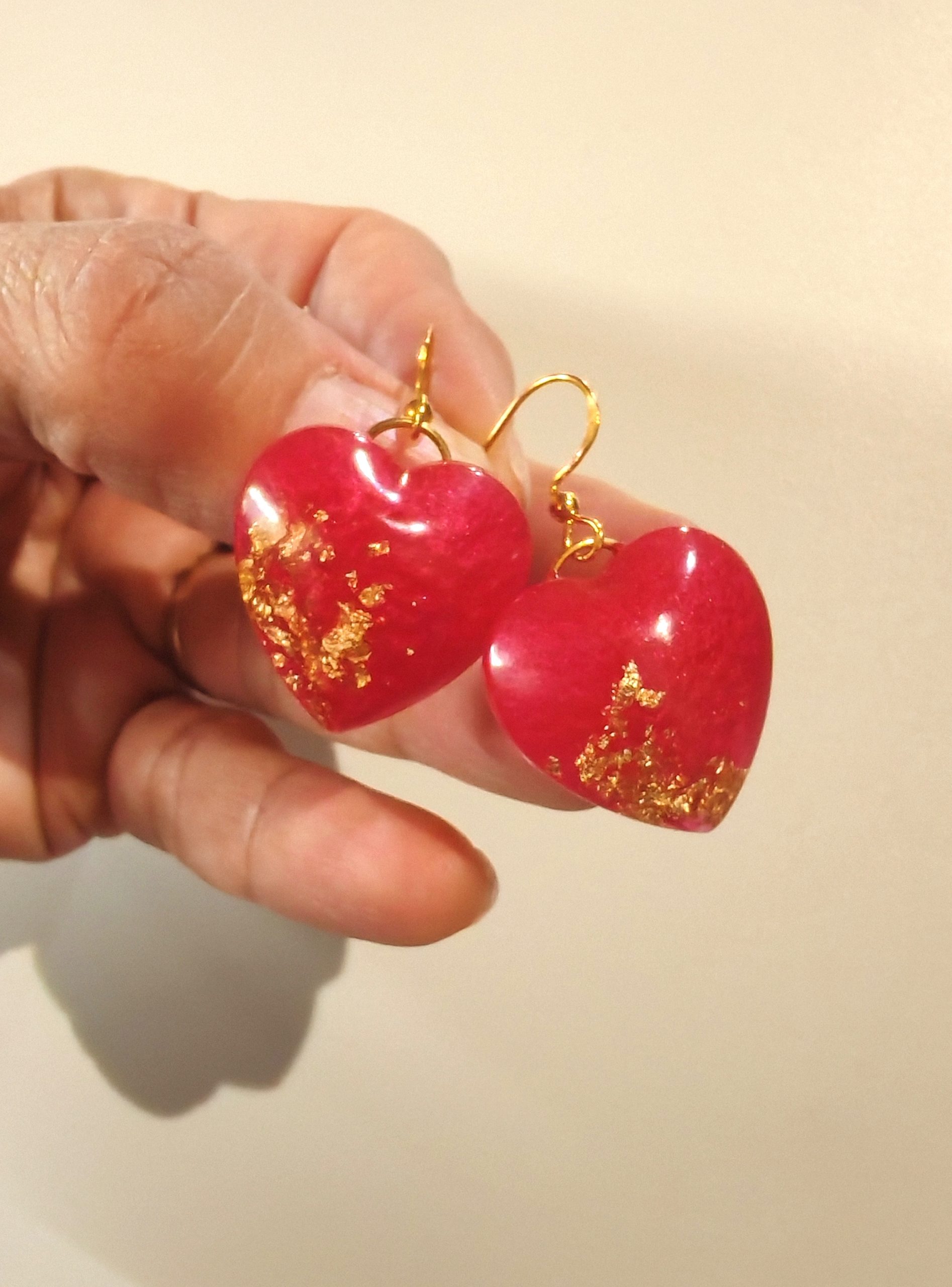 Oba kosa sta izdelana iz rdeče smole z nežnimi detajli zlatih lističev, kar ustvarja razkošen in brezčasen videz.