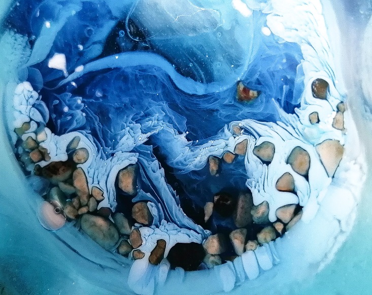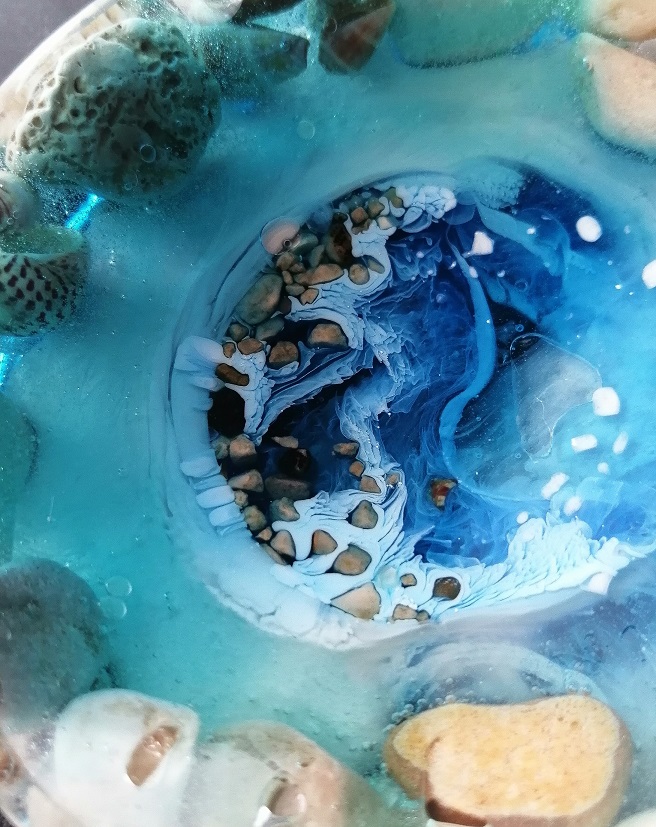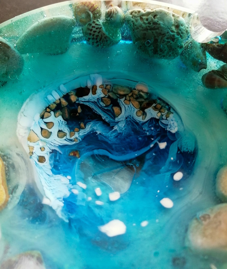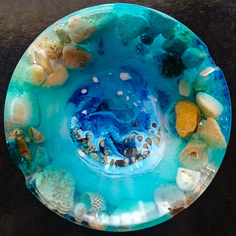 Ročno izdelan unikaten okrogli pepelnik iz smole Ocean