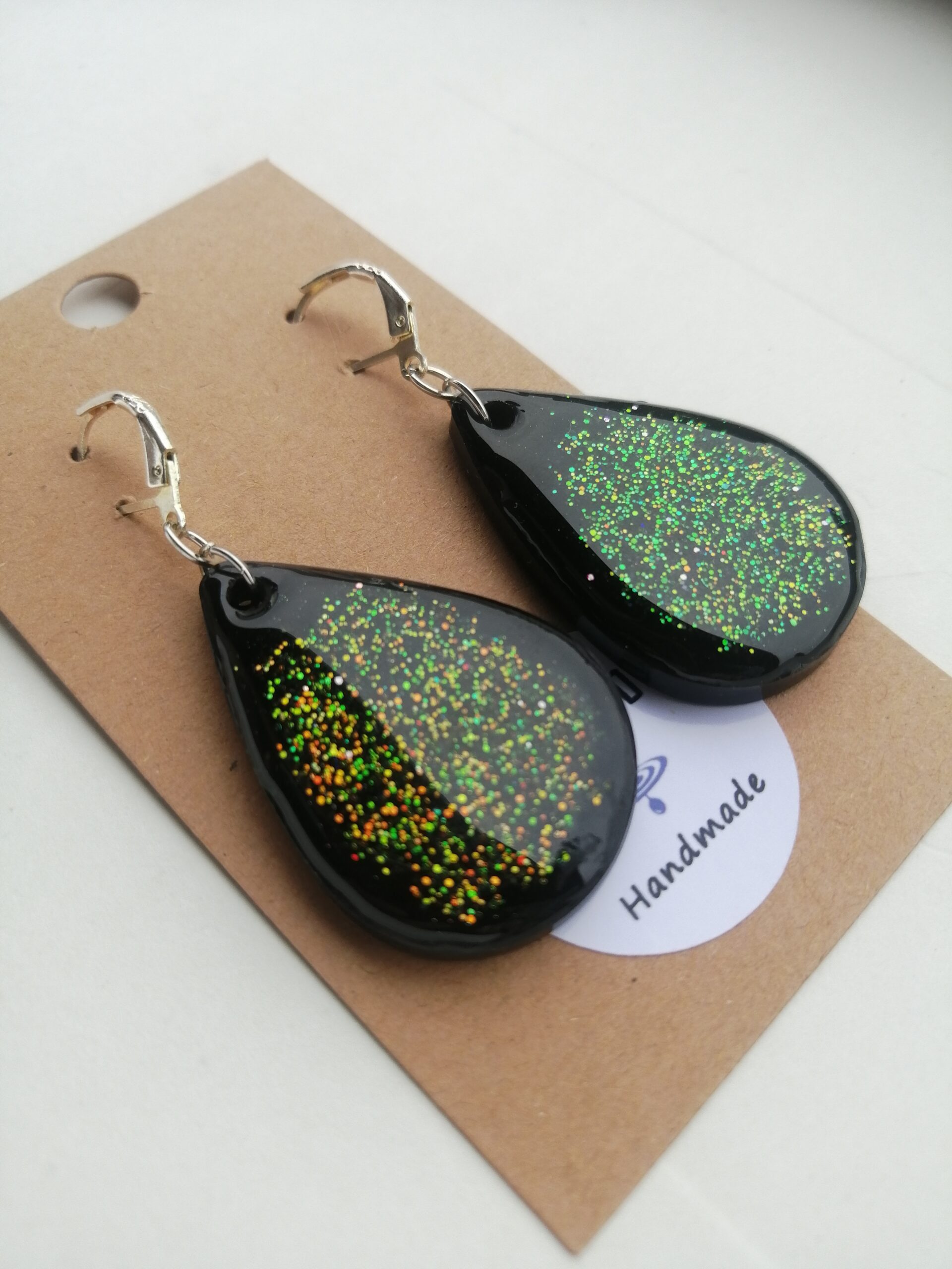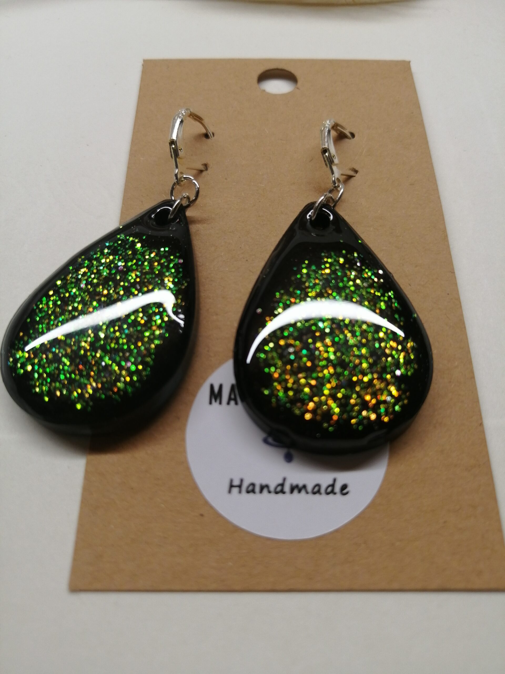 Dodajte pridih elegance in iskrivosti vsaki obleki z mojimi ročno izdelanimi uhani iz smole s čudovitimi večbarvnimi bleščicami. Ti čudoviti kosi so popolni za vsako priložnost, ne glede na to, ali se oblečete za večerni izhod ali dodate subtilen sijaj svojemu vsakodnevnemu videzu.
