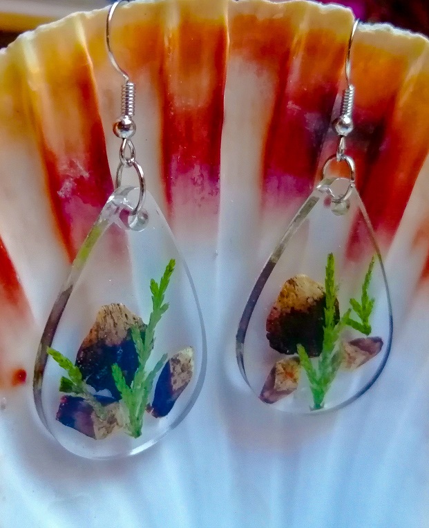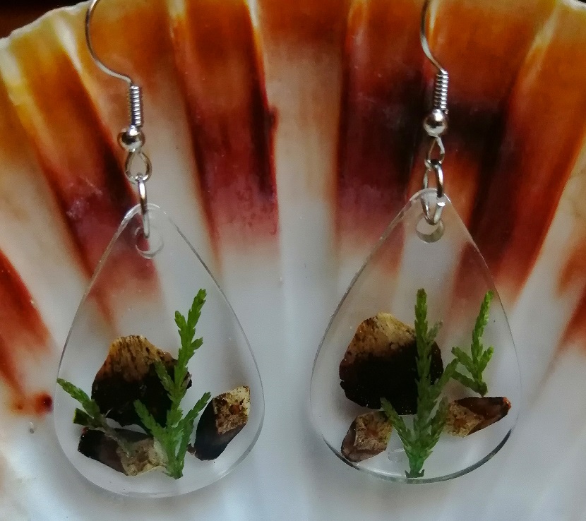 Ročno izdelani botanični uhani iz pravih posušenih storžev in smrekovih vejic, ki jih naberem v bližnjem gozdu. Sem jih posušila in ohranila v več plasteh smole.