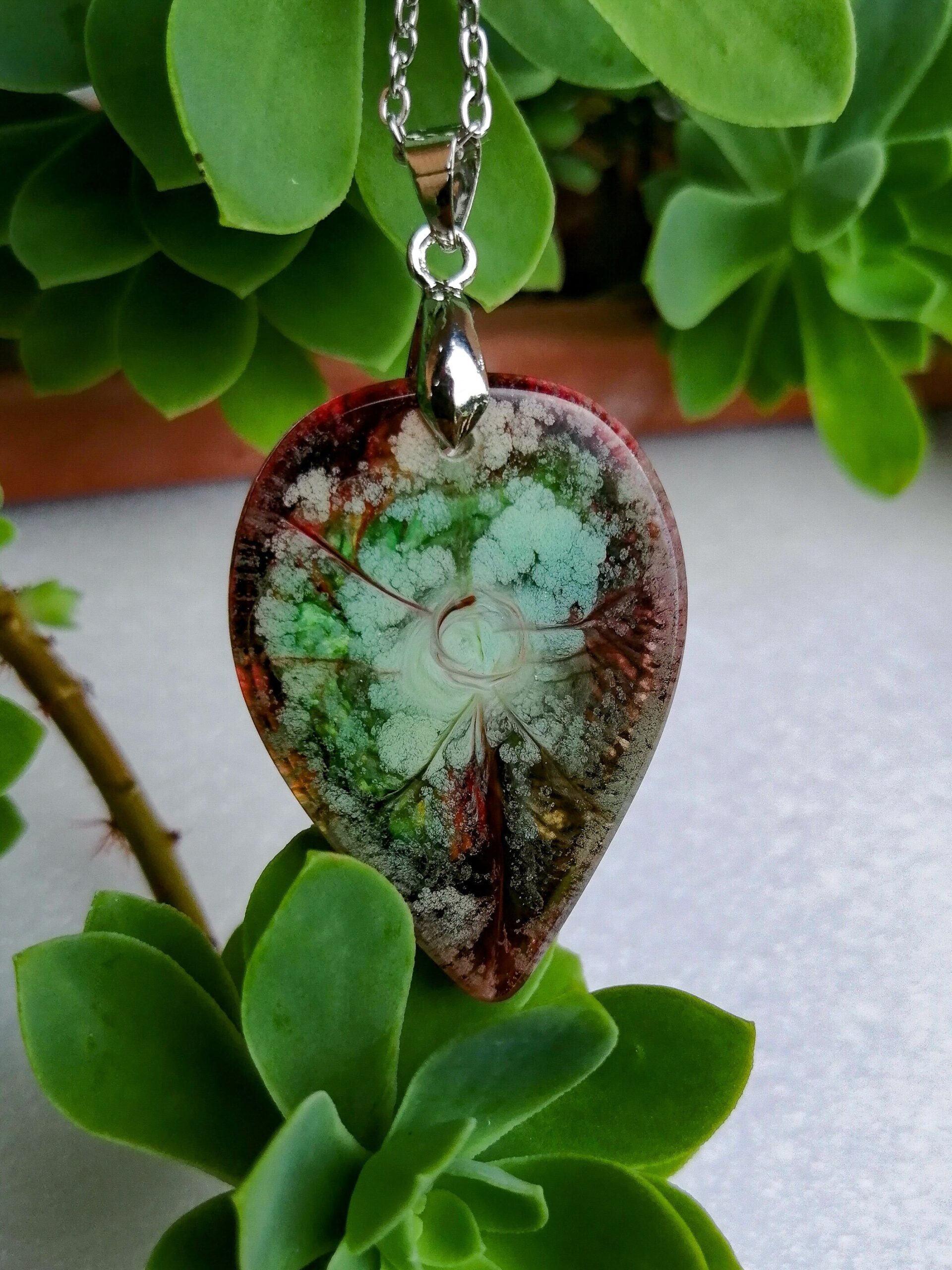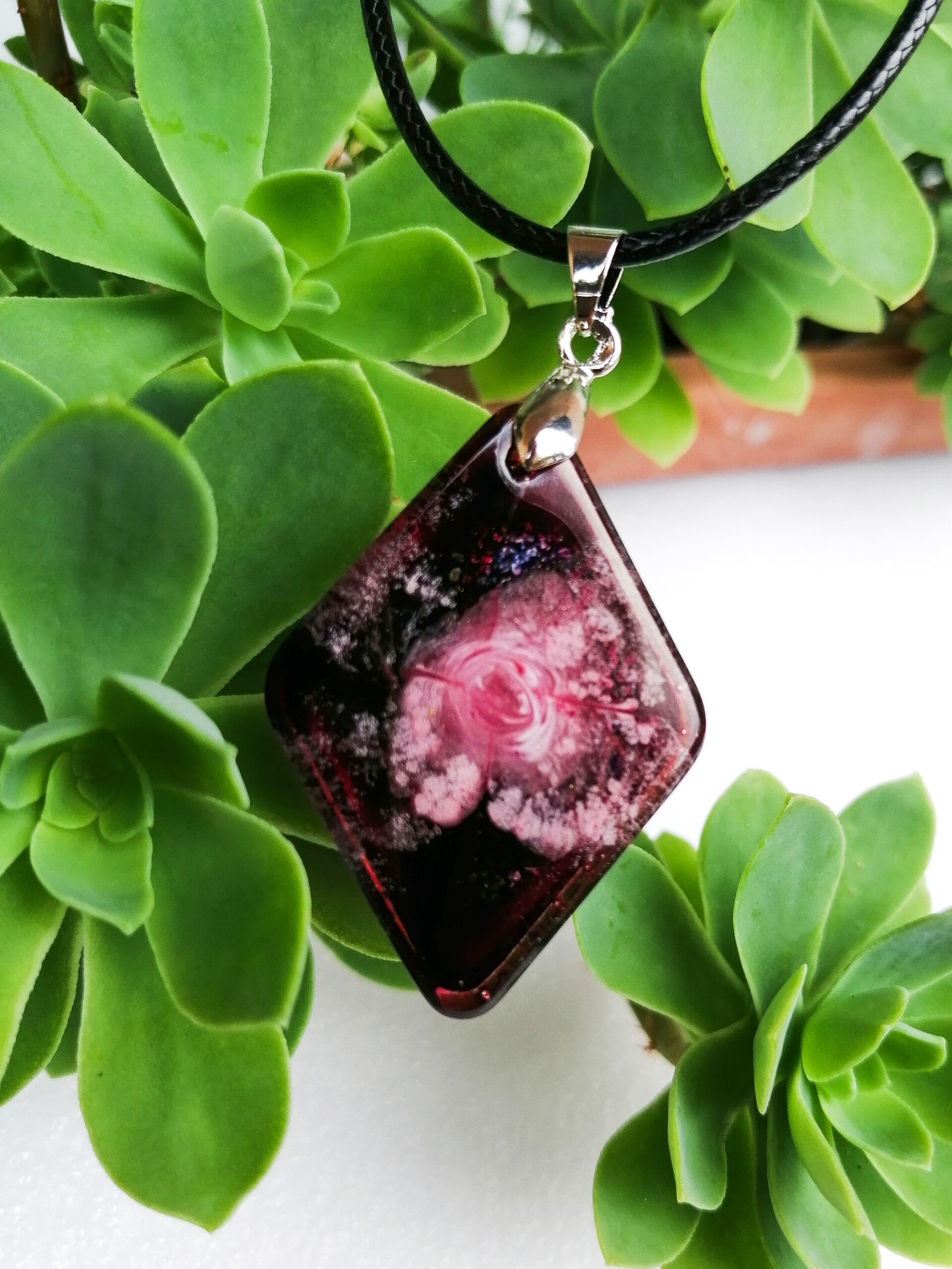 Ogrlice z obeski iz smole z alkoholnim črnilom so primerne za vsak stil in priložnost. Je odlično darilo za vse, ki imate radi lepoto in umetnost.
