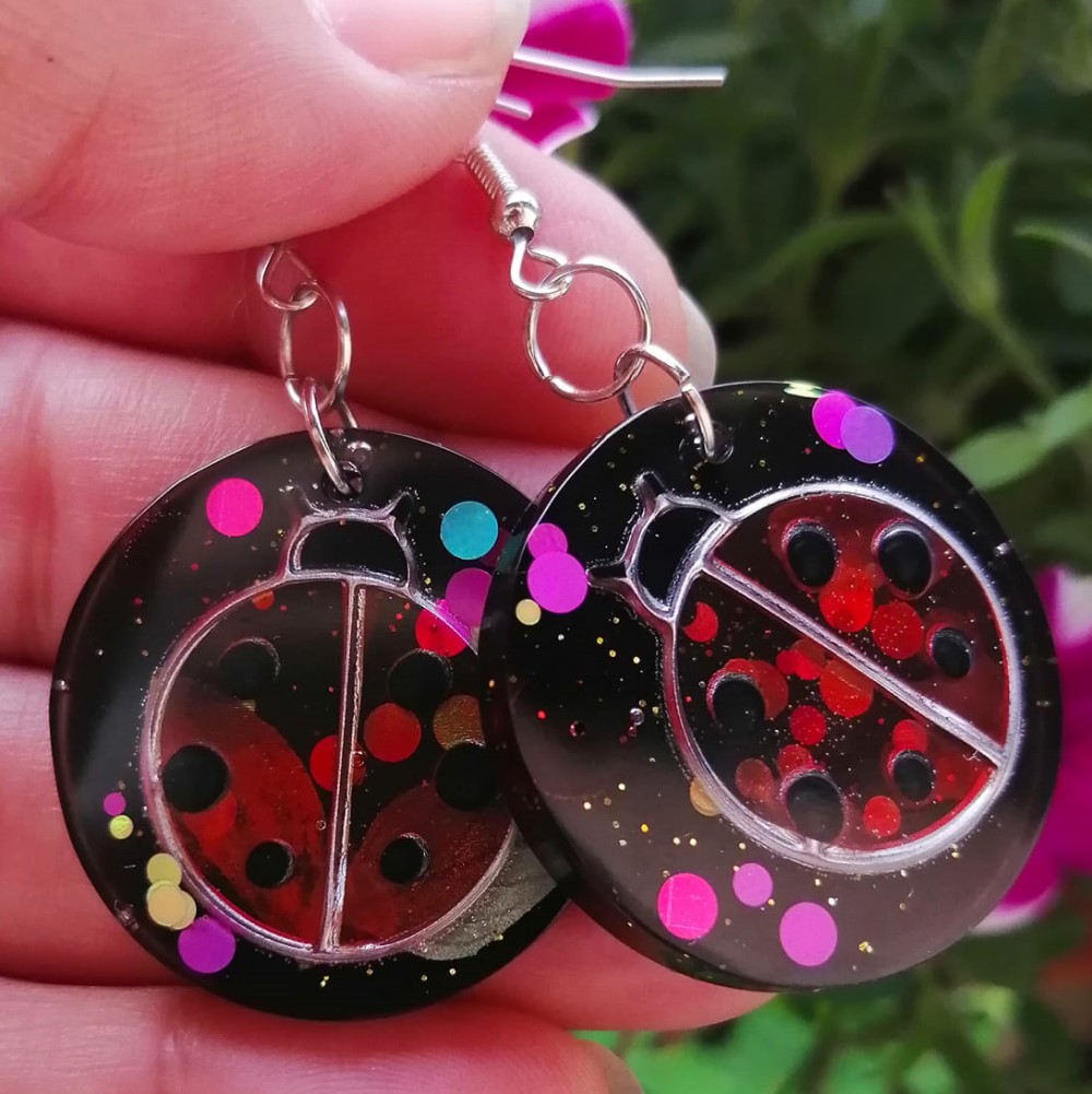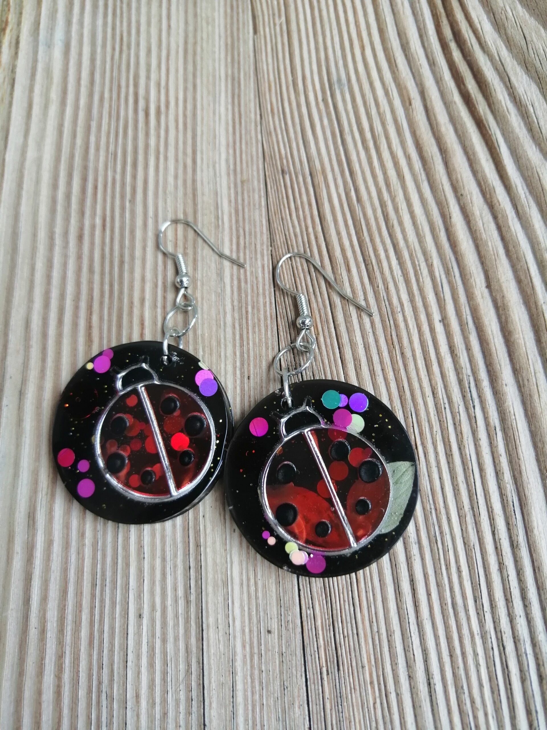 Te uhane sem naredila s poudarkom na dveh kontrastnih barvah: rdeča za Pikapolonico in črna za ozadje. Seveda je tudi veliko bleščic in pisanih konfetov.