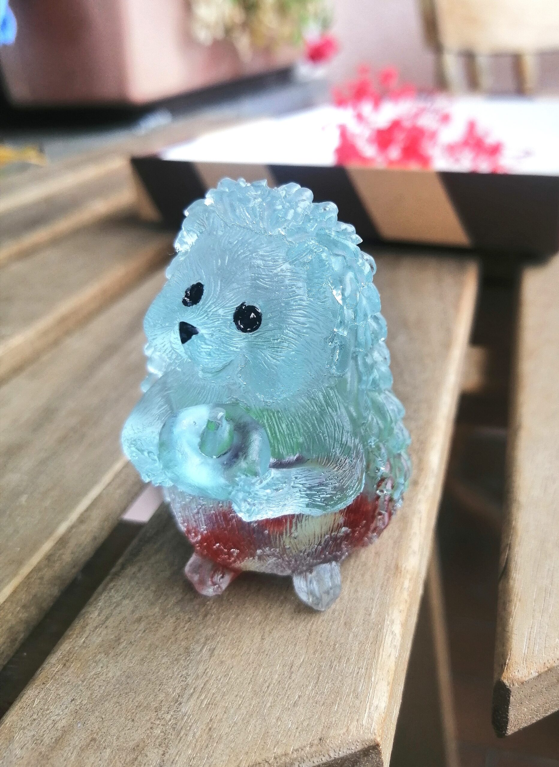 Ta prikupen mali modri ježek, narejen iz epoksi smole in suhih cvetov, je popolno spomladansko darilo za vse ljubitelje narave.